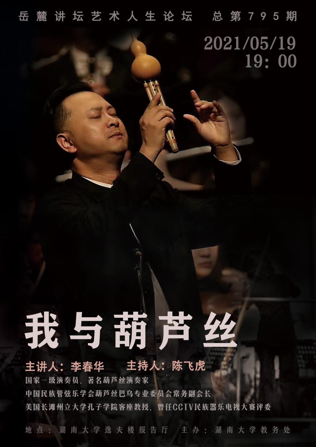 主講人:李春華(國家一級演奏員,著名葫蘆絲演奏家,中國民族管弦樂學會葫蘆絲巴烏專業(yè)委員會常務副會長,美國長灘州立大學孔子學院客座教授,曾任CCTV民族器樂電視大賽評委)